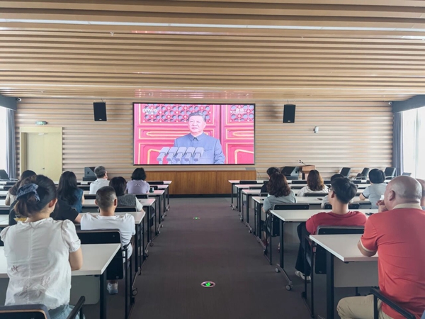 上午9時,全體員工聚精會神地觀看直播畫面,不時發(fā)出陣陣贊嘆。當國旗護衛(wèi)隊邁著鏗鏘有力的步伐走向升旗區(qū),當雄壯的《義勇軍進行曲》響徹天安門廣場,觀看現(xiàn)場的員工們自發(fā)起身,與現(xiàn)場同步高唱國歌,表達對祖國的深切熱愛和崇高敬意。
